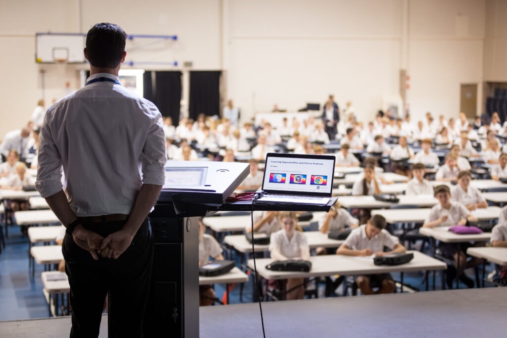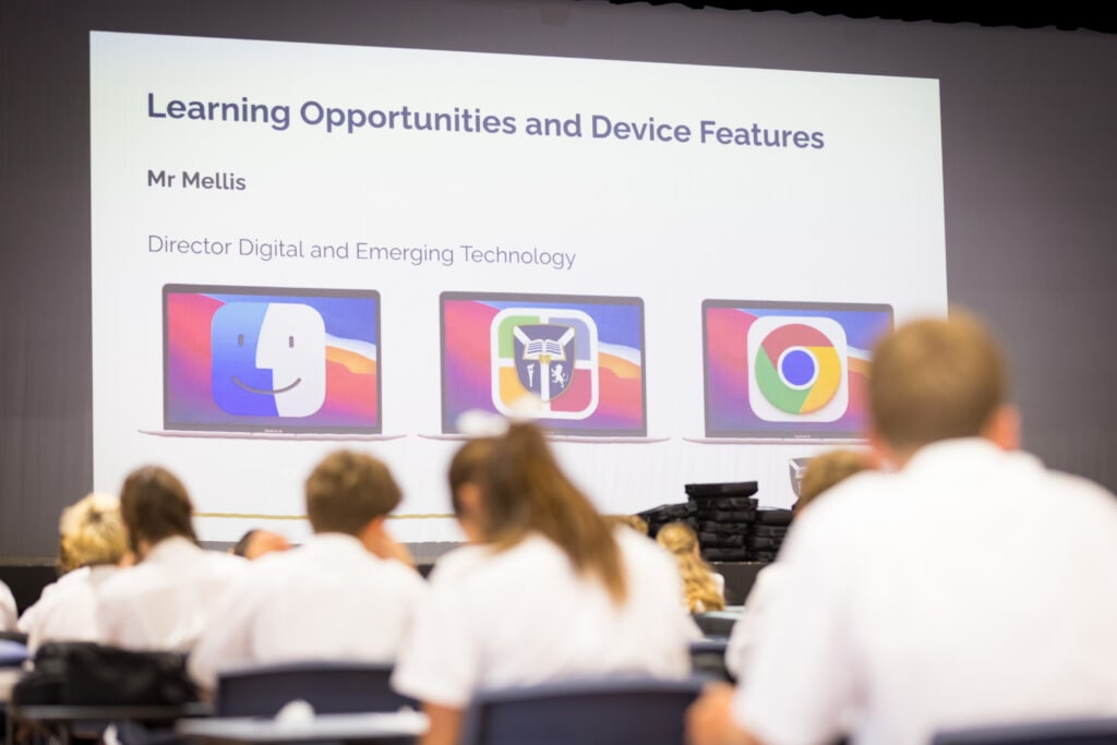 The transition began in Week 0, with both new and returning students attending briefings during Professional Development Week. These sessions supported students in understanding expectations for device use and completing the school’s technology agreement.